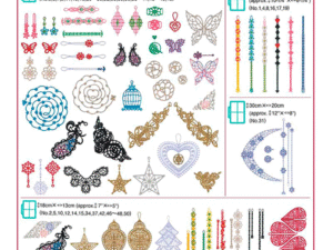 Collection de motifs de broderie inspirés de la dentelle 3D. Fabriquez des bijoux, des suspensions décoratives, etc…