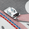 - Les deux rouleaux de ce pied clipsable de 7 mm assurent des coutures précises et régulières, car ils travaillent conjointement avec les griffes d’entraînement de la machine pour faire glisser le tissu.